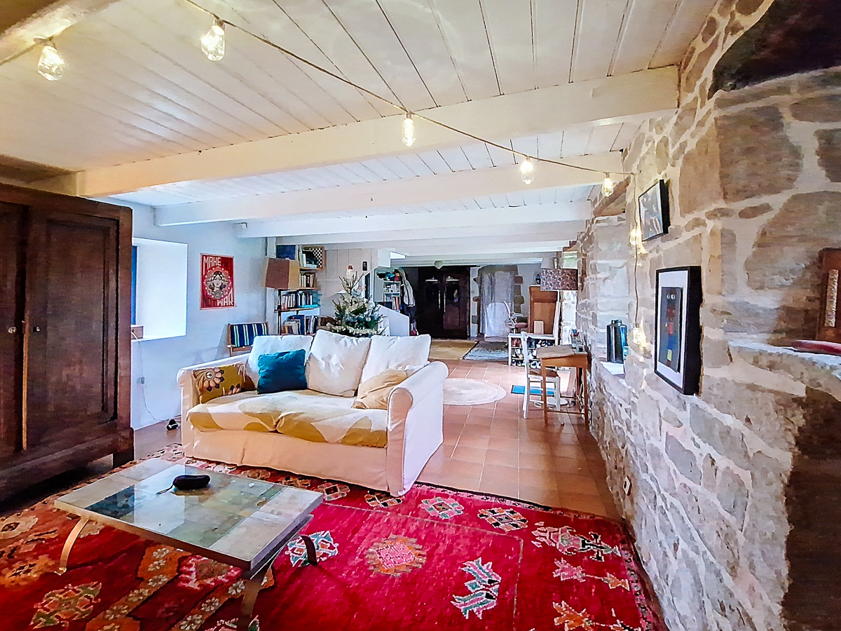 Exposée plein sud, l’entrée se fait via un premier jardin, sur la pièce de vie. Cette pièce a naturellement des ouvertures côté sud, mais également côté nord. Une belle cheminée et un poêle à granulés finissent de rendre chaleureux cet espace de 38m². Une extension côté ouest, composée en grande partie par une baie vitrée accueille la cuisine aménagée et équipée, la salle à manger et coin salon. Cette belle pièce lumineuse de 41 m² dispose également d’un poêle à granulés et s’ouvre sur le jardin. En continuité, l’ancienne grange a été aménagée en bureau ; Enfin, ce niveau est complété par une pièce, possible chambre de plain-pied, avec un accès plein sud sur le jardin et par deux wc.