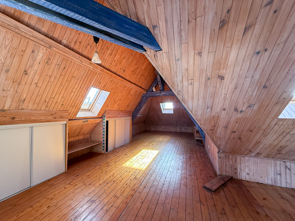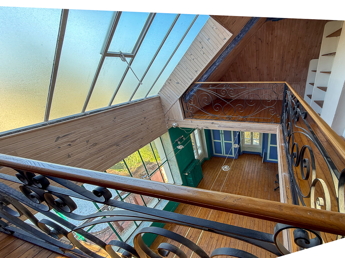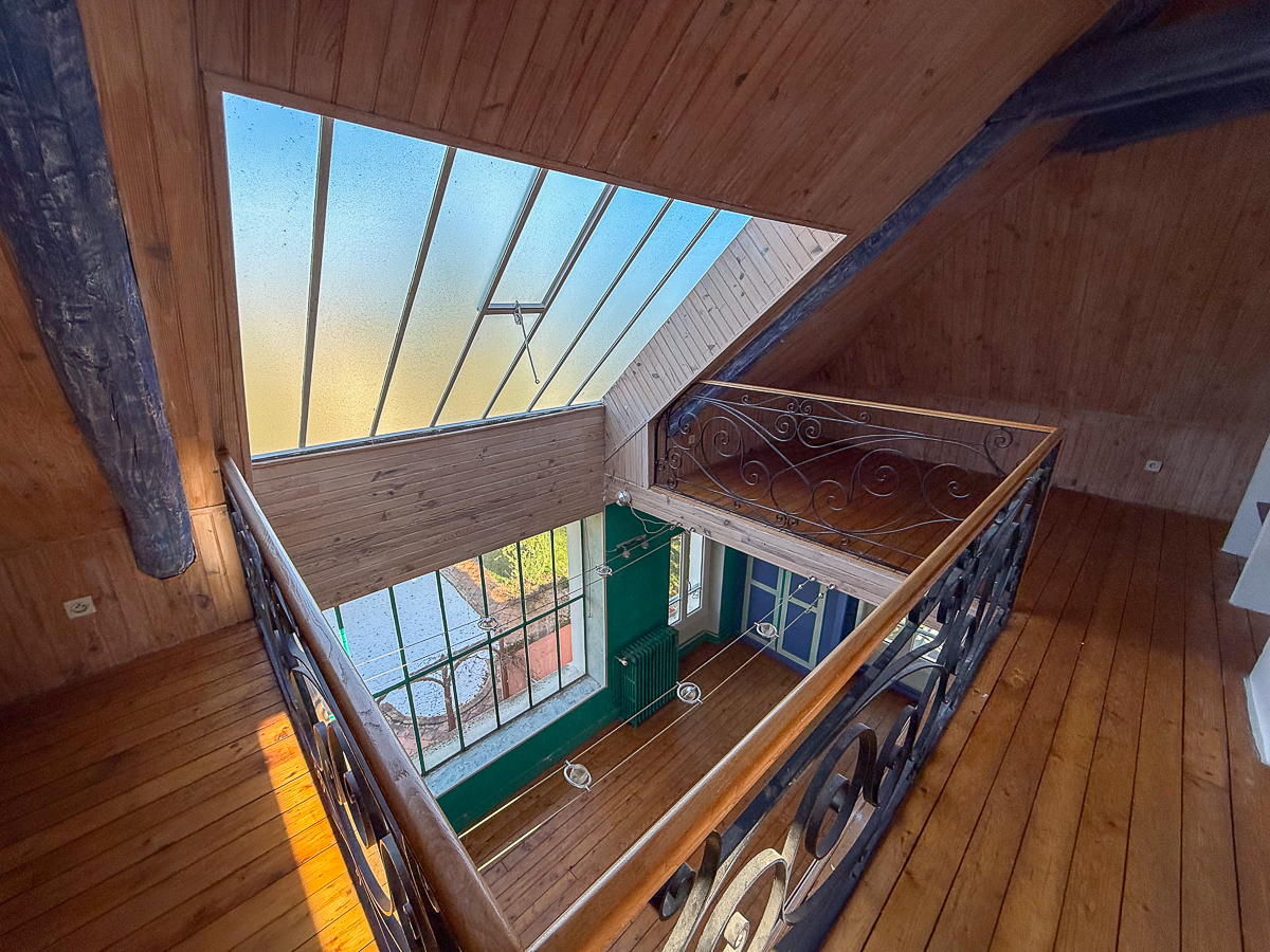 Le second étage est composé de trois chambres, d’une salle d’eau, wc séparés ainsi que d’un atelier d’artiste, offrant sous une grande verrière une surface de 32 m2 ainsi qu’une mezzanine prolongée par une vaste pièce, elle aussi propice à la créativité.
