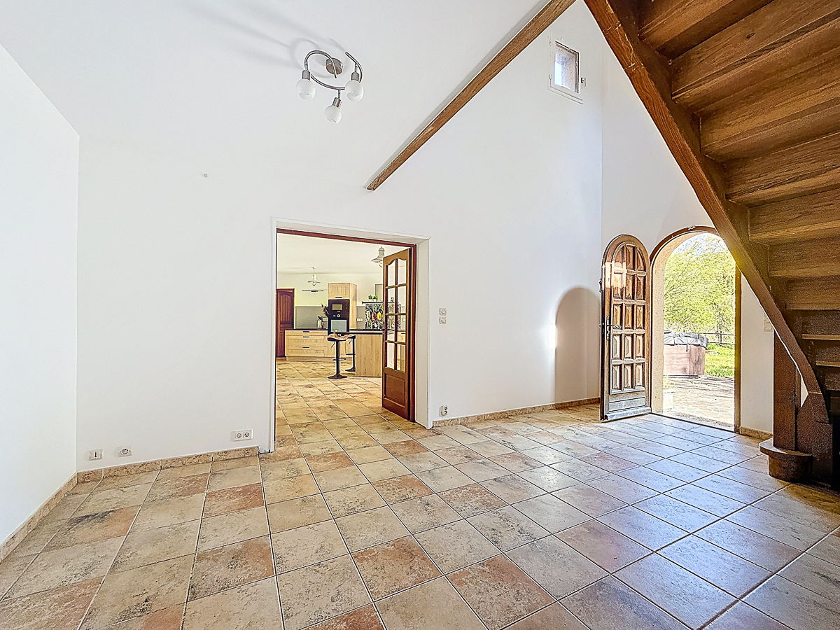 Au rez-de-chaussée, une vaste entrée cathédrale ouvre d’un côté sur une cuisine dinatoire de 38 m2 avec accès à un cellier/buanderie de 14 m2. De l’autre un séjour de 63 m2 avec cheminée bénéficiant d’une double exposition Est/Ouest. A ce niveau, l’espace nuit est composé de 2 très grandes chambres (19 et 24 m2) et d’une salle d’eau avec wc.