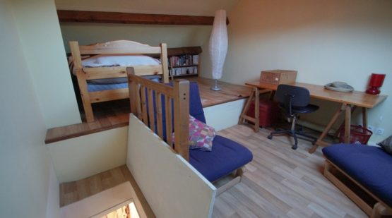 Au 2nd étage a été aménagée une 3ème chambre qui bénéficie d’une belle vue sur les toits de la cité médiévale.