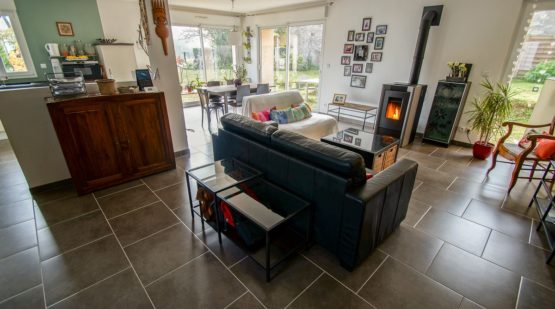 Au rez-de-chaussée, l’entrée donne accès à une pièce de vie de 56m2 composée d’une cuisine équipée ouverte sur un vaste séjour au milieu duquel un poêle à granulés apporte une chaleur agréable dans une parfaite maitrise de la consommation énergétique. L’espace nuit dédié aux parents est composé d’une grande chambre avec dressing ainsi que d’une salle de bains avec douche et baignoire. Les WC sont séparés. Une buanderie avec accès direct vers l’extérieur est également disponible à ce niveau.