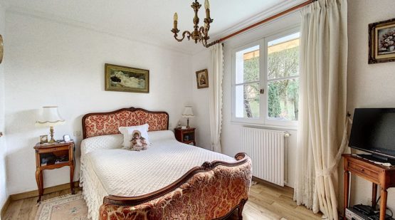 A l’étage le palier dessert deux belles chambres avec placards, un bureau, une salle d’eau avec WC.