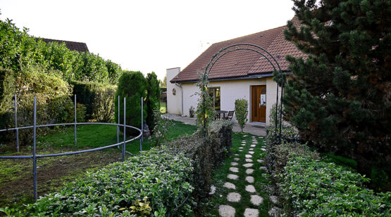 Sa terrasse surélevée de 75m2 et son terrain plat entièrement clos et arboré de 1207m2, doté d’un chalet avec jacuzzi et d’une piscine hors-sol, lui confèrent un cadre de vie exceptionnellement paisible et verdoyant et une vue dominante sur la campagne et les montagnes environnantes.