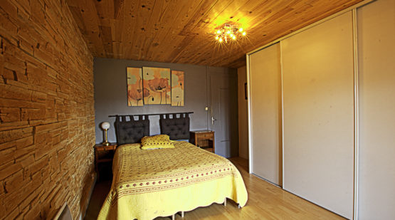 Le deuxième étage accueille une spacieuse chambre avec mezzanine agrémentée de pierres et poutres apparentes et bénéficiant d’une hauteur sous plafond de plus de 4m. Une charmante pièce mansardée, avec vue sur le Guiers, pouvant aisément servir de bureau ou de chambre bébé, complète ce niveau.