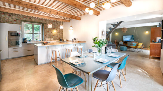 Cette propriété de charme du XVIIIème siècle, véritable Mas de Provence, a fait l’objet ces dernières années d’une rénovation totale, associant des volumes et perspectives contemporaines dans le respect de son identité, préservant ainsi sa toiture et ses plafonds provençaux, ses murs de pierres, sa terrasse plein sud et son jardin paysagé et partiellement ombragé.